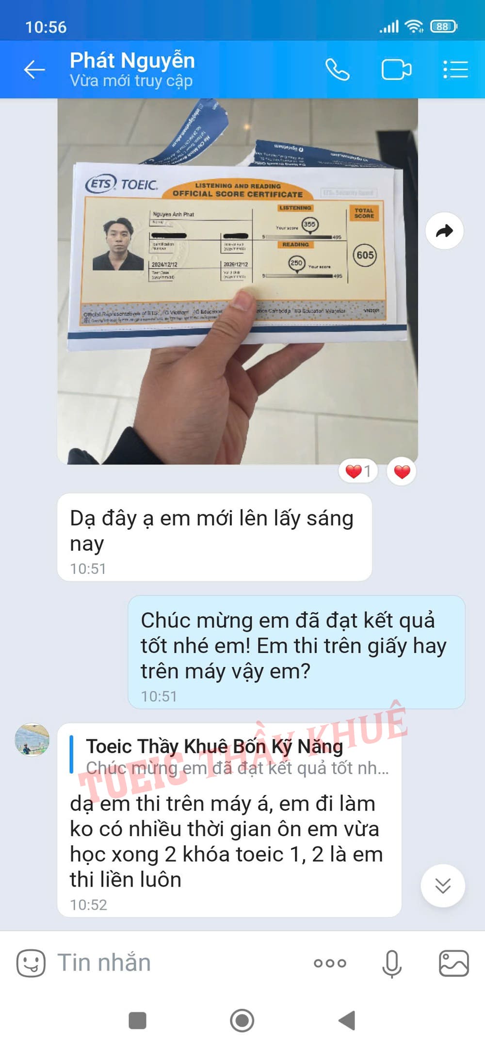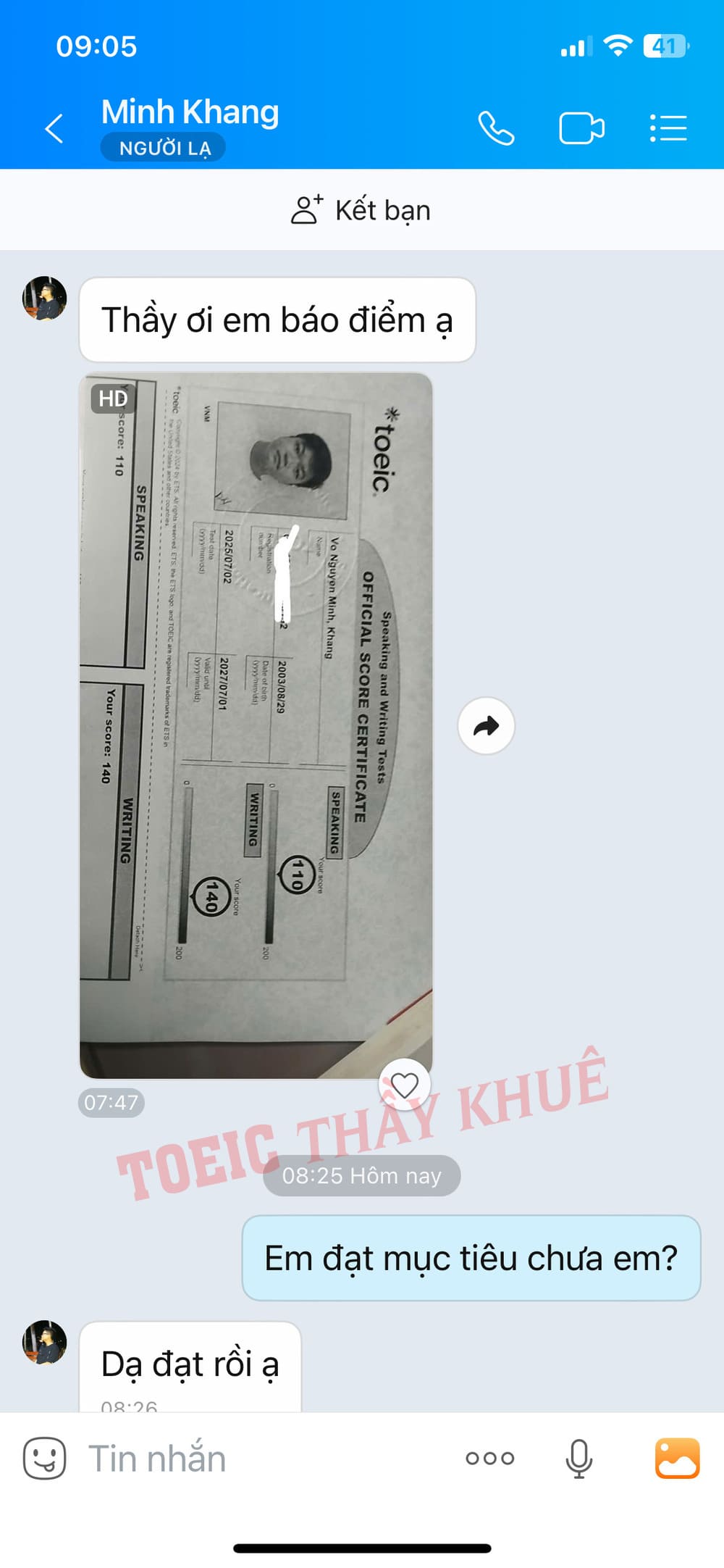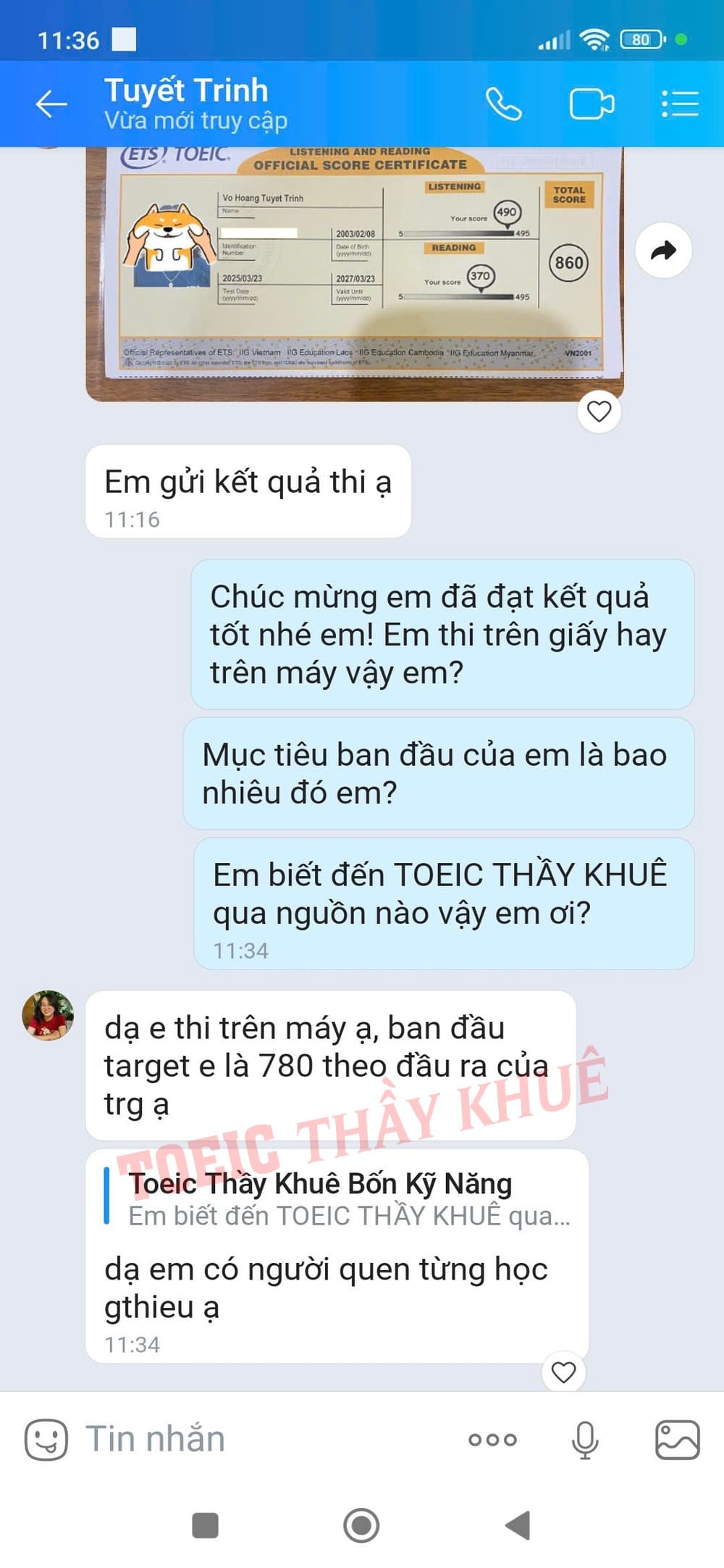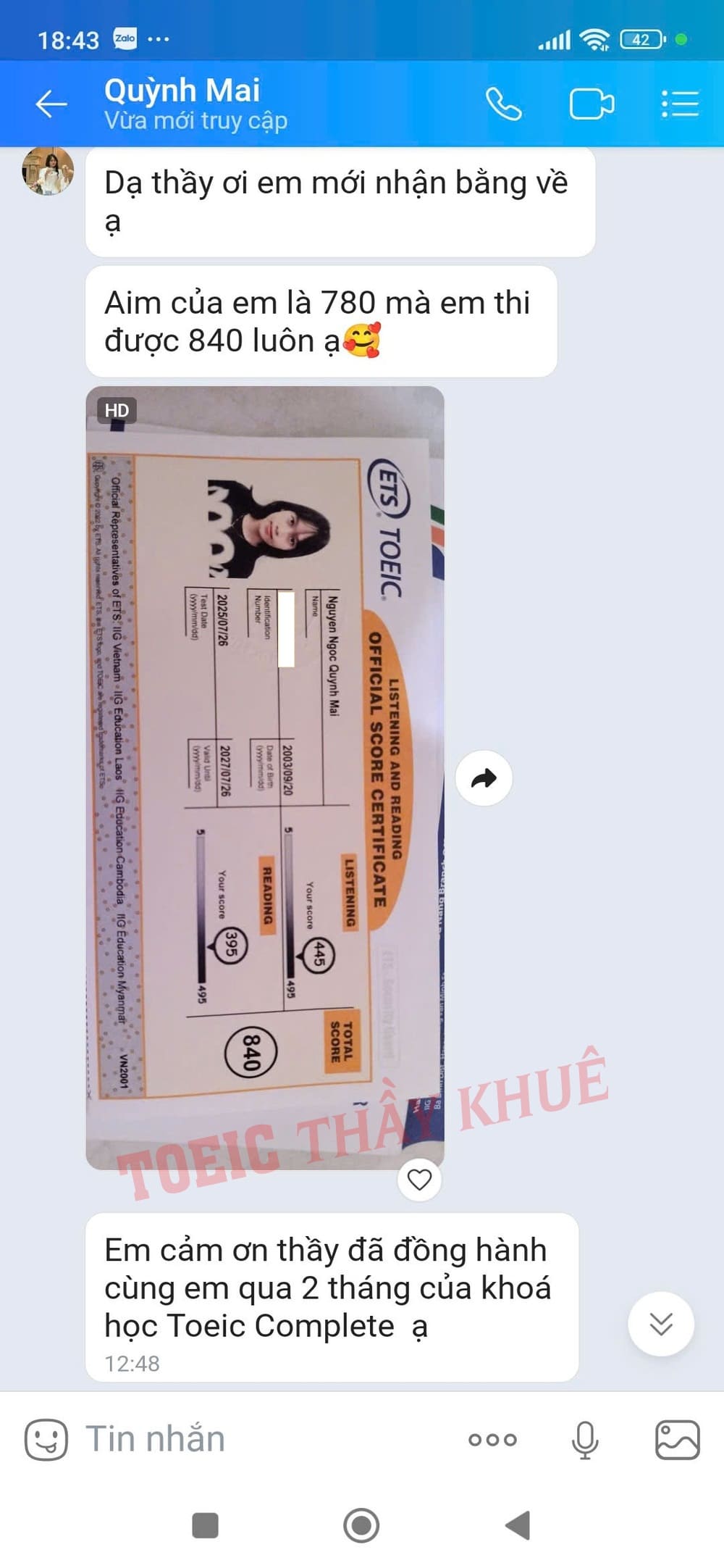 HỌC VIÊN BÁO ĐIỂM TẠI TOEIC THẦY KHUÊ
