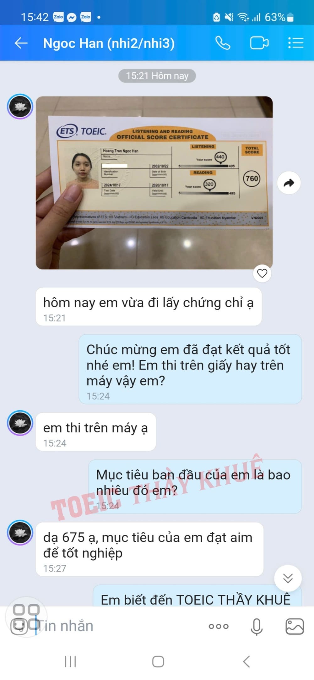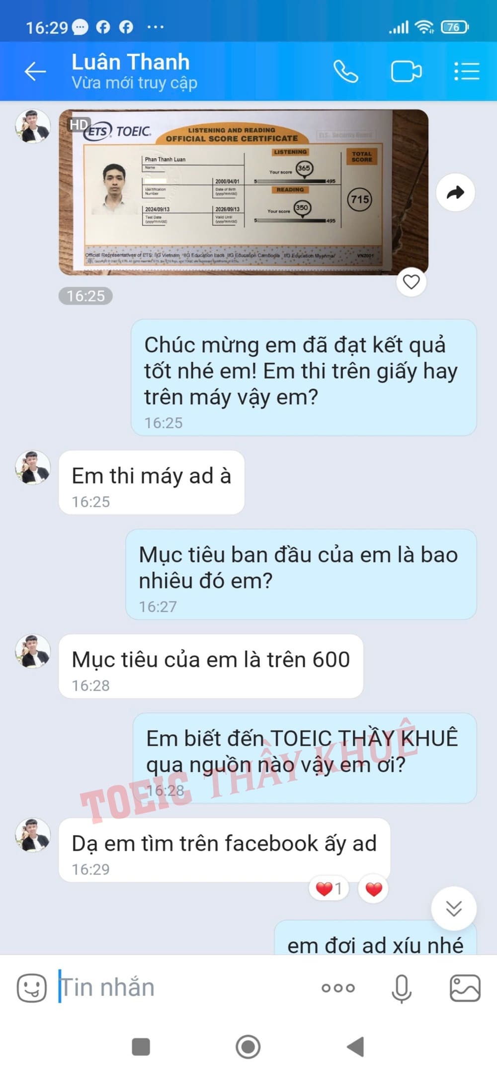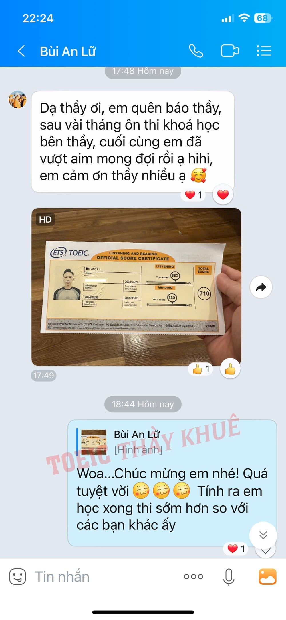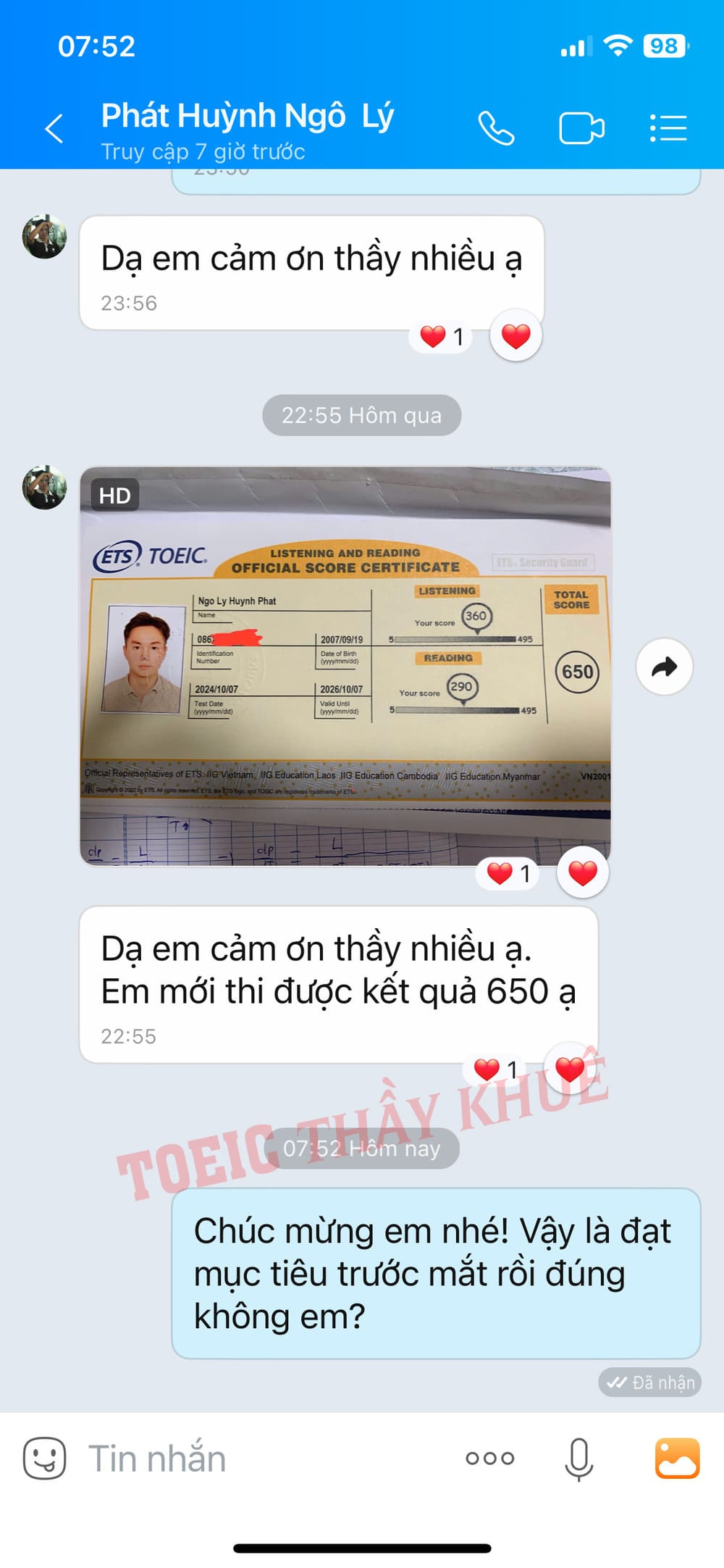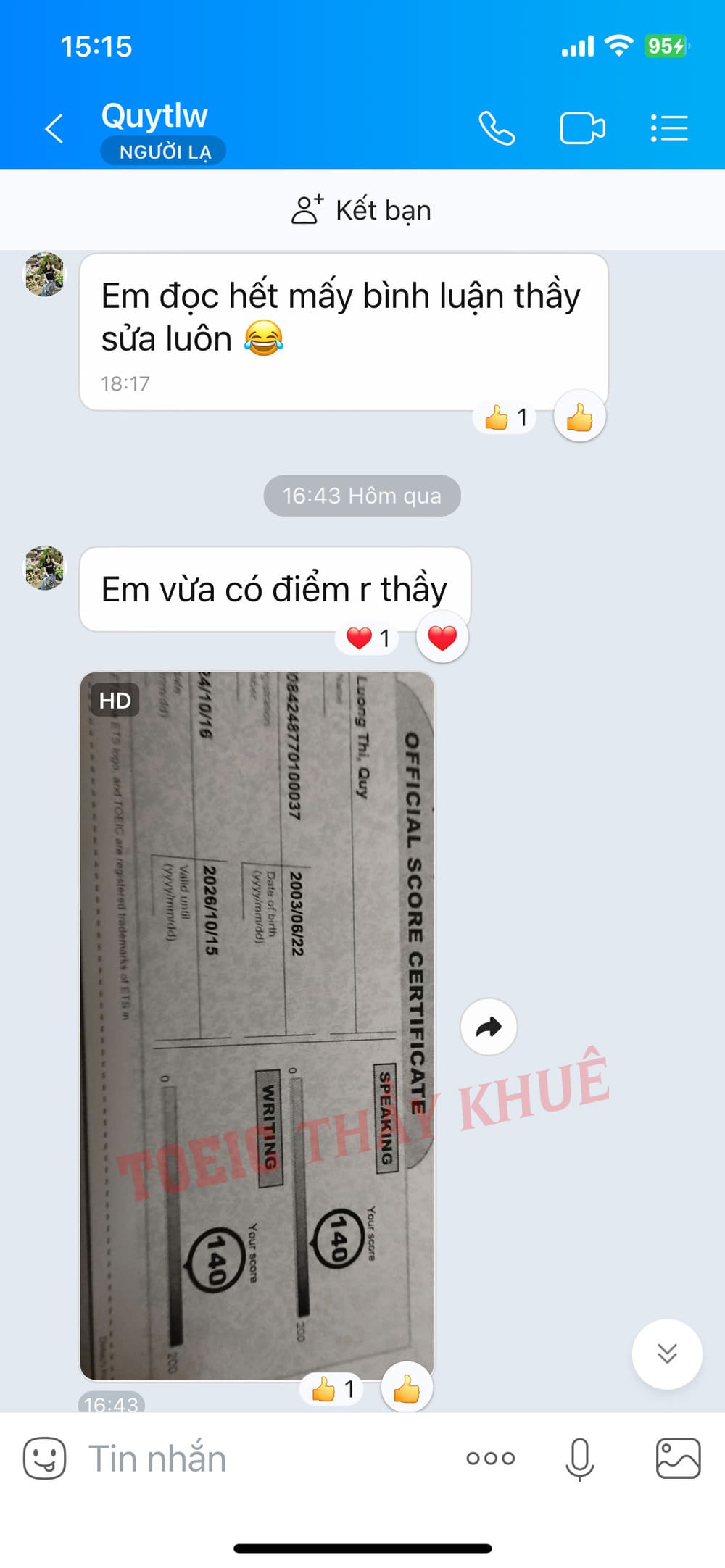 HỌC VIÊN BÁO ĐIỂM TẠI TOEIC THẦY KHUÊ