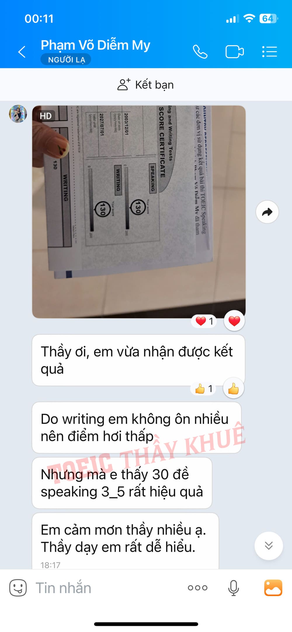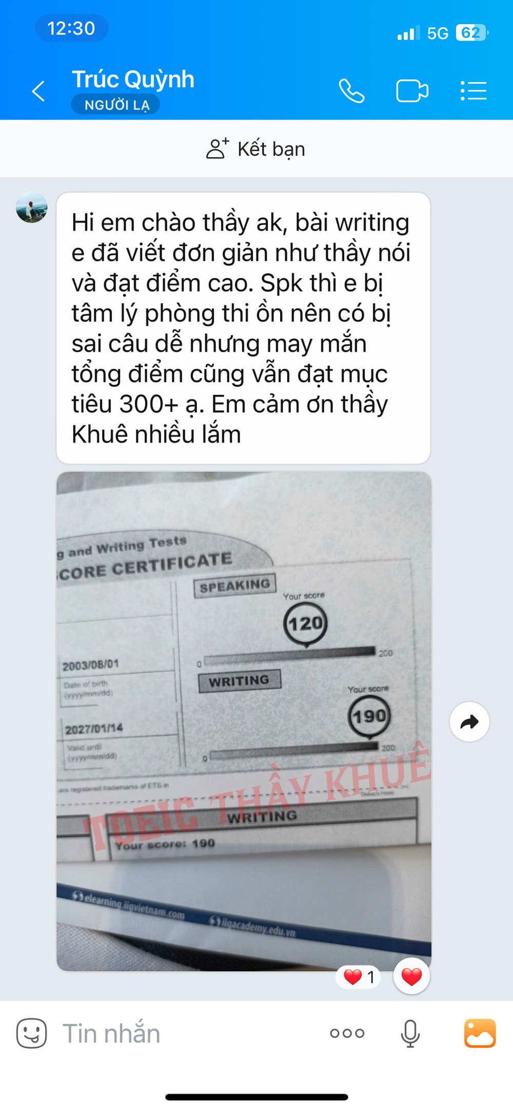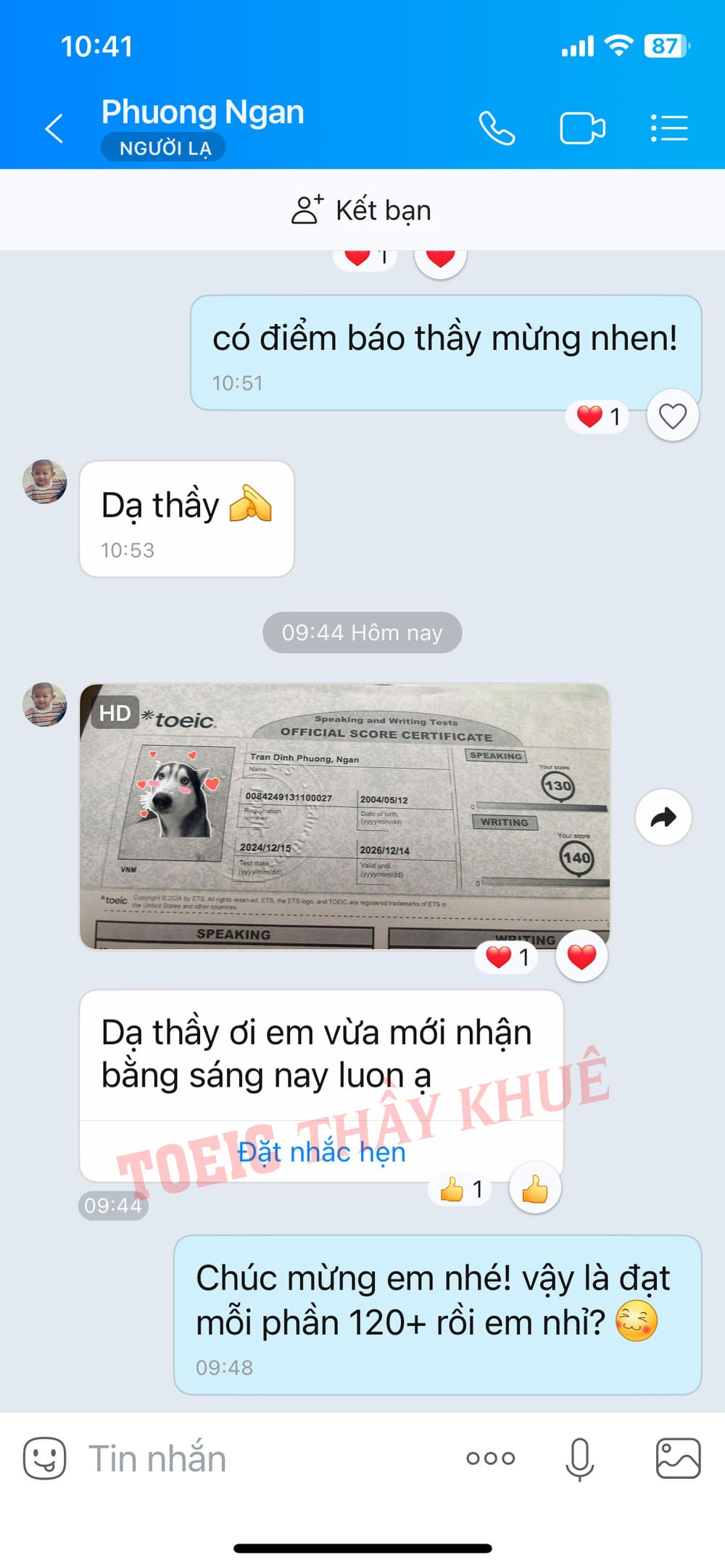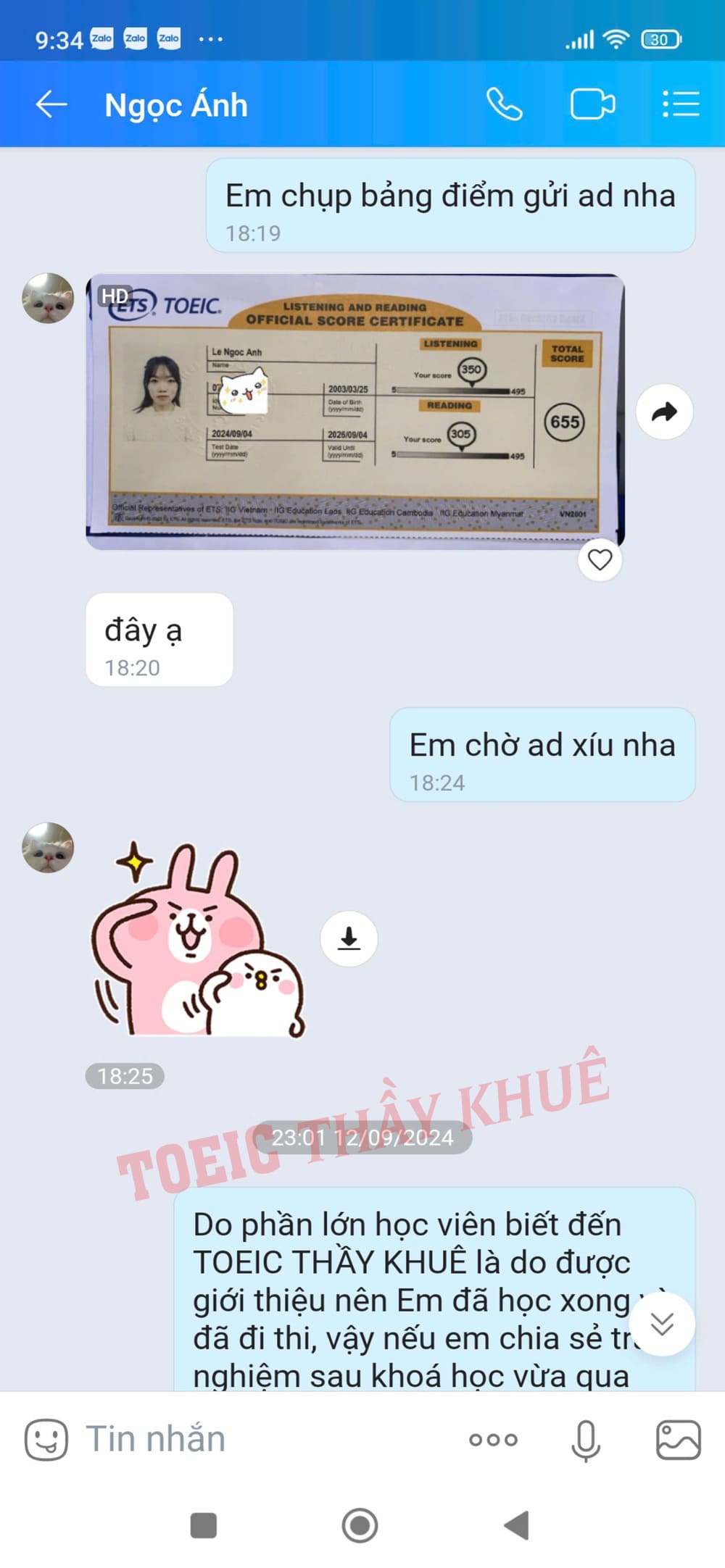 HỌC VIÊN BÁO ĐIỂM TẠI TOEIC THẦY KHUÊ